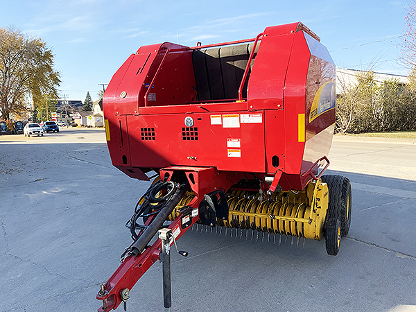 Description: 2014 New Holland BR7060 round baler, Bale Command with twine, net and bale slice,1.8m XtraSweep pickup with hydraulic lift kit, 18L-16.1 SL 10-ply tires, 540 rpm CV PTO, bale bumper, transport lights, safety tow chain. Serviced through our shop. 8,414 bale count. Very sharp, clean baler.