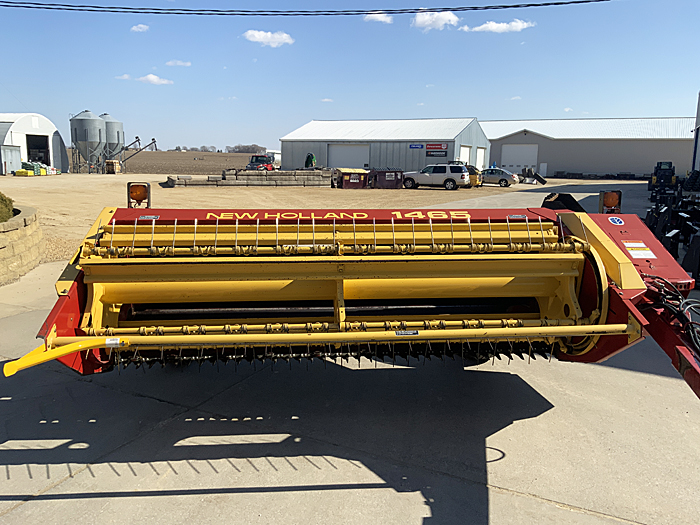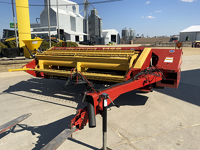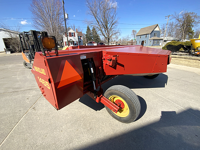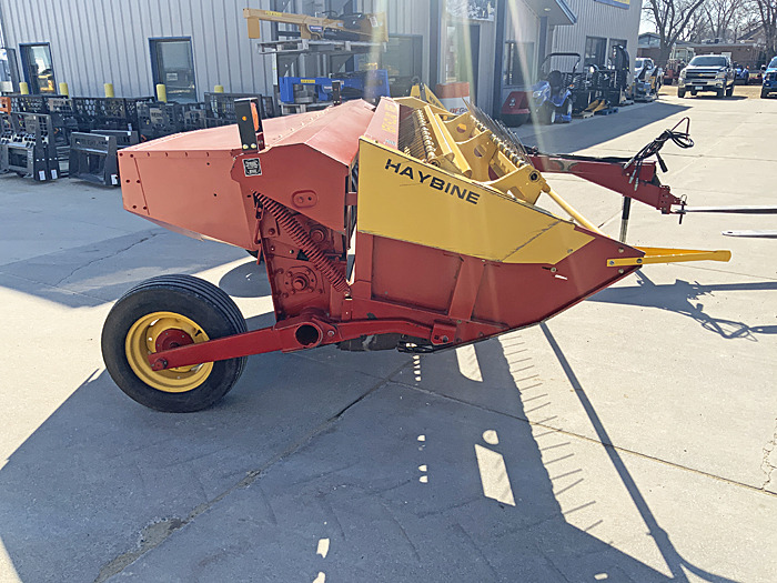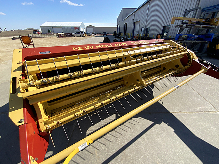 Description: Used New Holland 1465 haybine mower conditioner, 9' 3" cut, rubber conditioner rolls, 540 PTO, hydraulic tongue shift, hydraulic lift cylinder, transport lights, low usage, very sharp, original paint. Consigned unit.