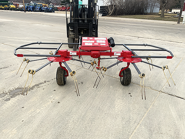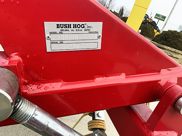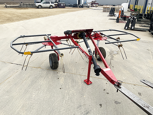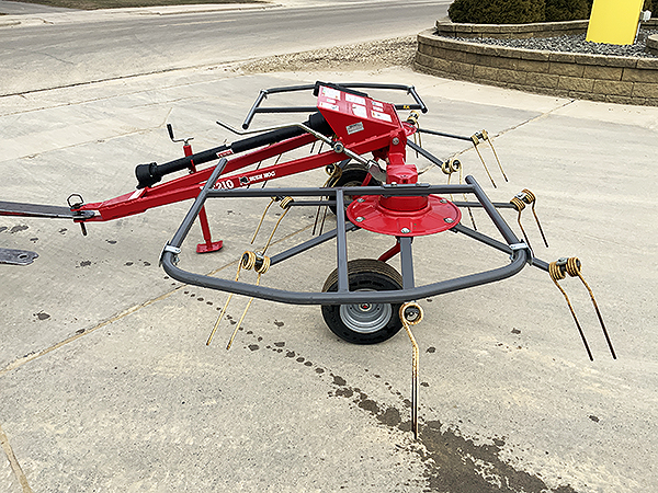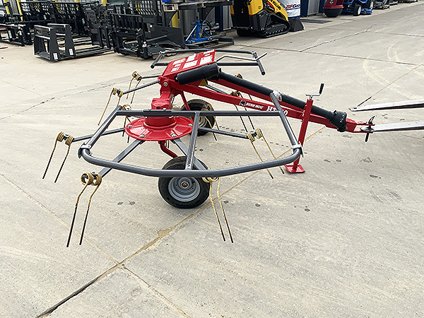 Description: Used Bush Hog HT210 10-foot hay tedder, 540 PTO, manual hand crank tilt adjustment, very low usage, like new condition. S.N.: 293766