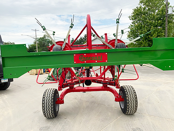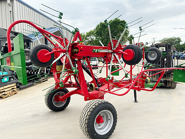 Description: New Enorossi G6 740 PT 24-foot hay tedder, hydraulic folding wings, hydraulic tilt, 540 PTO, tandem axles, set of eight 16X650-8 wheels and tires. Include transport carriage and wheels. Weighs 1,917 lbs. Includes all cylinders and hoses. Setup and ready to go. Lists @ $28,370, including freight & setup. We have two units in stock. 03/26/2026