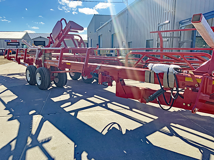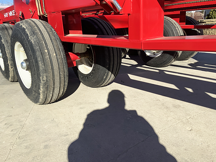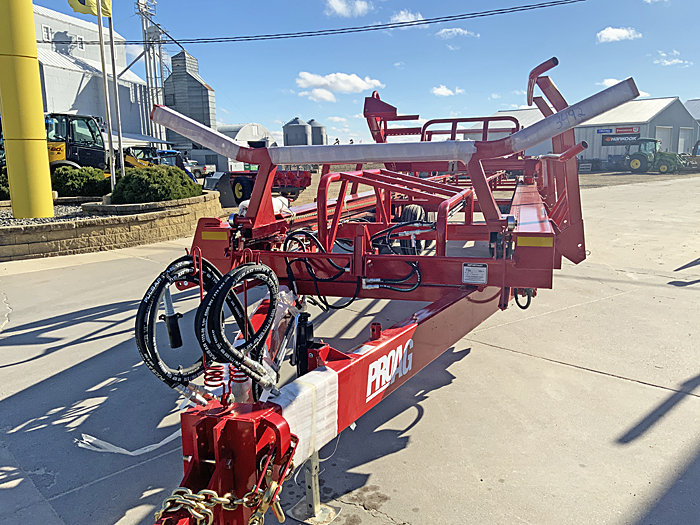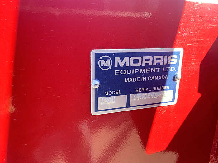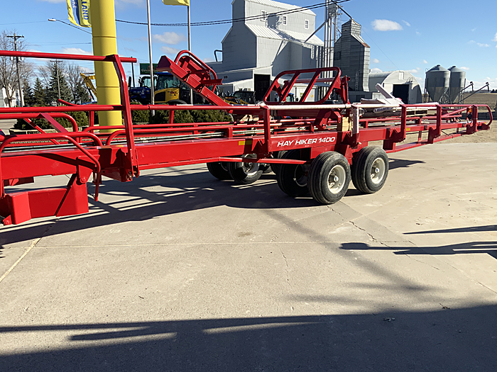 Description: New 2024 Morris ProAG 1400 Hay Hiker round bale transport. Hydraulic fork picks up the bales and loads the bales onto the dual bed. Push bar moves the two bales back to allow picking up and loading two more bales. Capacity is 18 48" wide bales or 14 60" wide bales. To unload bales, the bed is raised hydraulically. The push-off bar moves the bales to the rear, which then forces the tractor and bale transport forward out from underneath the bales. Eight 8-bolt wheels with 11LX15 FI load range F tires. Transport lights. Safety tow chain. Weighs 7,455 lbs. Load capacity 29,000 lbs. Requires 180 hp tractor (minimum) with two sets of remote couplers. Length 44' 10". List price $62,485, including factory freight to dealer and setup. To view video of 1400 Hay Hiker in action, Click here. 11/19/2024