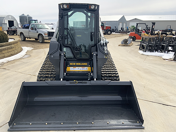 Description: New New Holland C332 track SSL, 2 speed, mechanical controls, cab with heat/AC/radio, air ride seat, hydraulic Q-tach plate, mechanical cab LCD display, engine block heater, steel lights with turn signals, performance with front electric multi-function, 450mm (17.7") tracks, 84" low-profile extended bucket with factory installed bolt-on cutting edge. We have three one unit in stock.