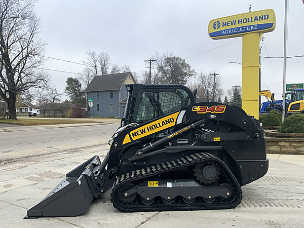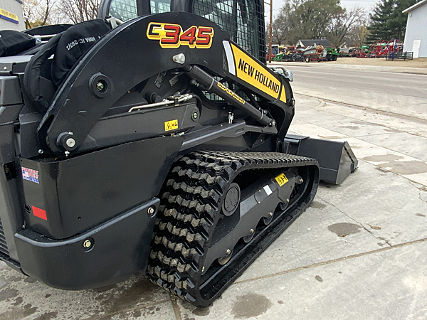 Description: New New Holland C345 track SSL, 2-speed, E-H controls, cab with heat/AC/radio, air ride seat, hydraulic Q-tach plate, E-H cab LCD display, engine block heater, steel lights with turn signals, performance with front electric multi-function, 450mm (17.7") tracks, 84" low profile extended bucket with factory installed bolt-on cutting edge, ride control, self-leveling, Hi-Flow Plus auxiliary hydraulics. Black color. Note: This SSL has been sold, but we have a new unit on order. Please call for details. 10/16/2025