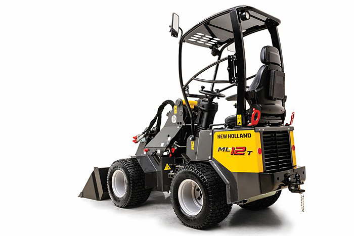 New New Holland ML12 T articulated loader with telescopic reach, foot and hand throttle, foldable ROPS, creep control, continuous one-way hydraulic flow, 1X hydraulic function level and joystick, telescoping boom, one boom work light, 49" bucket, 24X13-12 turf-style tires, vertical lifting capacity up to 1,650 lbs., 25 hp engine. The ML12 is an effective combination of strength, versatility and light footprint, making it exceptional for smaller tasks for any surface. The machine fits into a variety of landscaping jobs, including removing fallen trees and hauling gardening materials. Operators also appreciate the safety entry bar, non-suspension vinyl seat, armrests and exterior mirror that combined create a comfortable driving experience.