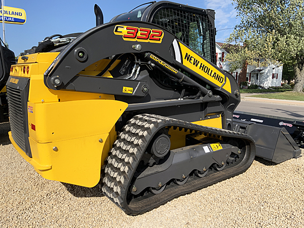 New New Holland C332 track SSL, 2 speed, mechanical controls, cab with heat/AC/radio, air ride seat, hydraulic Q-tach plate, mechanical cab LCD display, engine block heater, steel lights with turn signals, performance with front electric multi-function, 450mm (17.7") tracks, 84" low-profile extended bucket with factory installed bolt-on cutting edge.
