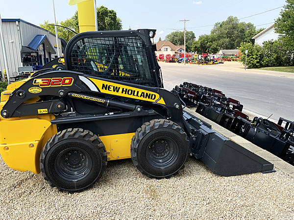 New New Holland L320 SSL, 2 speed, E-H controls, air suspension seat, hydraulic Q-tach plate, LCD display, engine block heater, steel lights with turn signals, performance with front electric, 12X16.5 heavy duty tires (70 OTW), 78" low profile extended bucket with bolt-on cutting edge, ride control, self-leveling, standard flow auxiliary hydraulics.