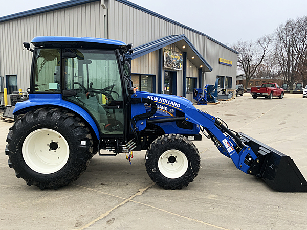 Description: New New Holland Boomer 55 T4B 4wd compact tractor, deluxe cab, heat/air conditioning, 12-16.5 R4 6-ply front tires, 17.5LX24 R4 6-ply rear tires, New Holland 260TLA loader with joystick mid-mount valve and 72" bucket, front & rear work lights, two rear remote valves, 3-range HST transmission, factory installed mid-PTO, standard 3 pt. with top link. We have six two units in stock. 05/22/2025