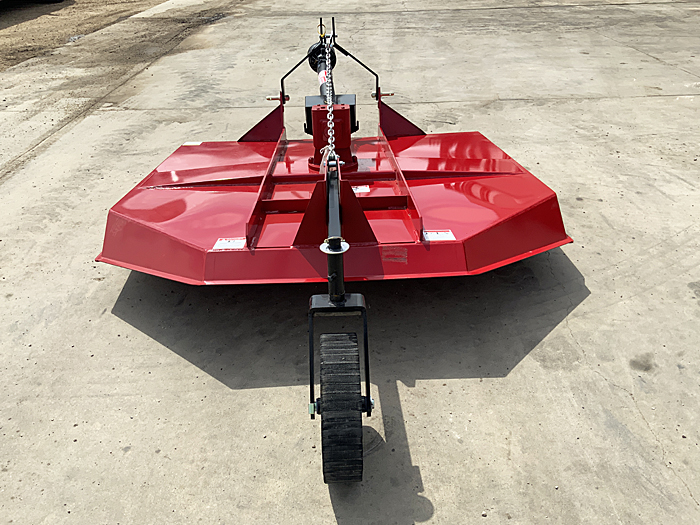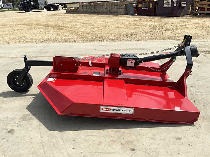 Description: New Walco 121006 6-foot rotary cutter, laminated rear tail wheel, shear pin protection, red in color. 04/22/2026 S.N.: 2026-37129