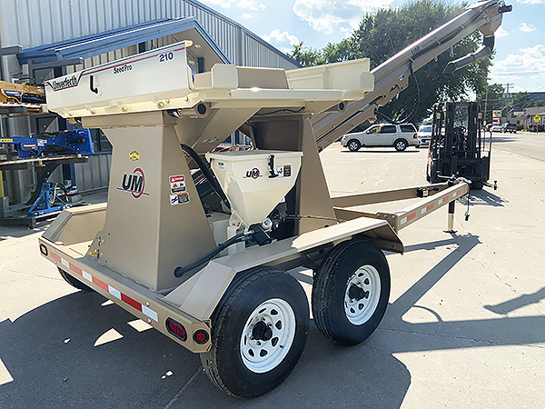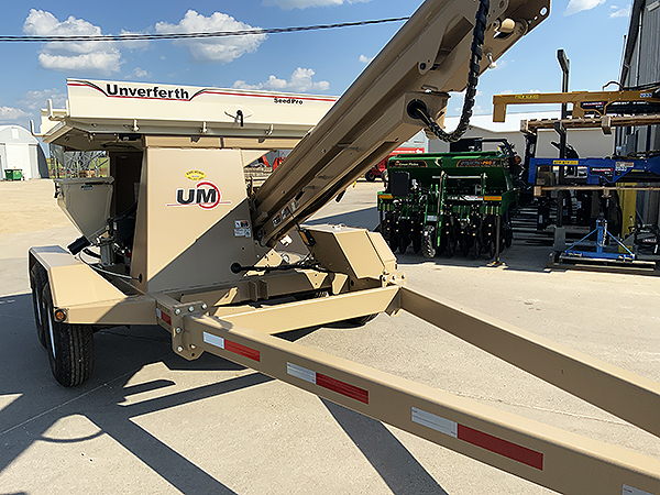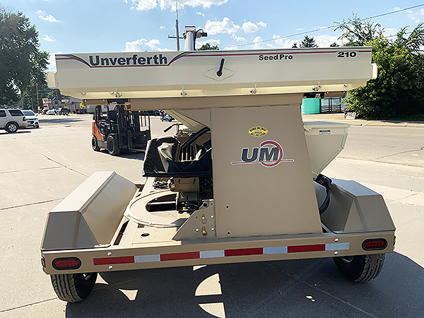 Description: New Unverferth model 210 two-seed box carrier, two-axle undercarriage, 6" X 18' conveyor, bumper pull hitch, talc applicator, two-function wireless control, 2520 scale package, standard light/marker. List price including factory freight & predelivery: $42,680.