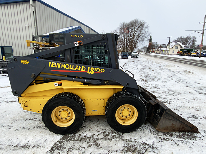 Description: 2000 New Holland LS180, 2 speed, hand/foot controls, high-flow auxiliary hydraulics, cab enclosure with heater, deluxe seat, 12-16.5 tires, engine coolant heater, 78" low-profile bucket with bolt-on cutting edge, 2,618.6 hours, total service just completed through our service department. Very clean, sharp unit.