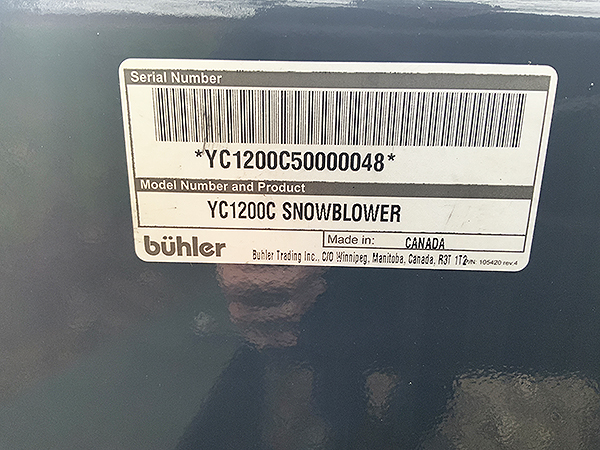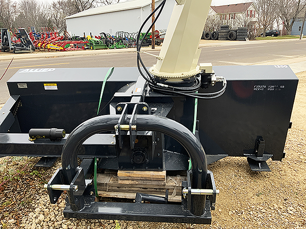 Description: New Buhler Allied Y1200CL 120" 3 pt. double auger snowblower, (1¾" 20 spline 1,000 PTO), Orbit motor gear drive spout rotator with hydraulic hoses & tips, hydraulic spout deflector with cylinder & hoses, oil bath chain drive with double #80 chain, shear pin protected PTO shaft, adjustable skid shoes, replaceable bolt-on cutting edge. Weighs 2,600 lbs. Lists @ $18,490 including setup & freight. We have two one unit in stock. 11/06/2024