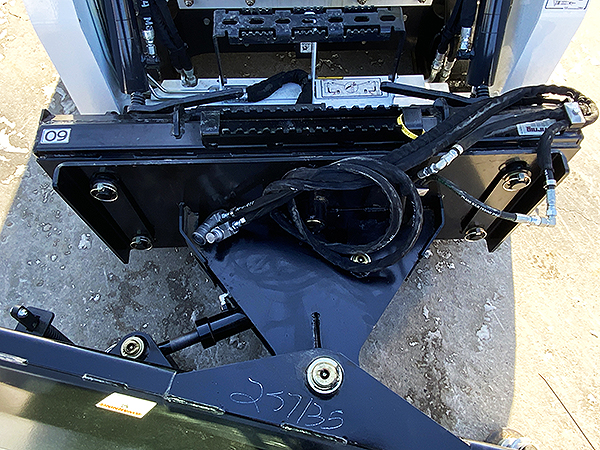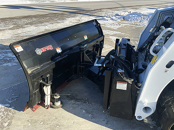 Description: New Virnig SBS60-LD V50 60" angle snow blade, 4" side-to-side oscillation, pin-adjustable dish-style skid shoes, double spring trip edge has 5/8" X 8" bolt-on cutting edge, hydraulic angle 30 degrees left or right, weighs 815 lbs. Lists @ $4,830.