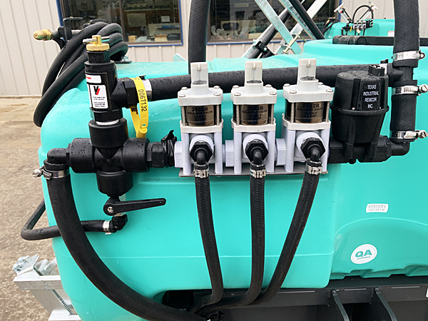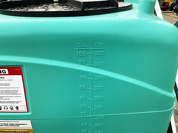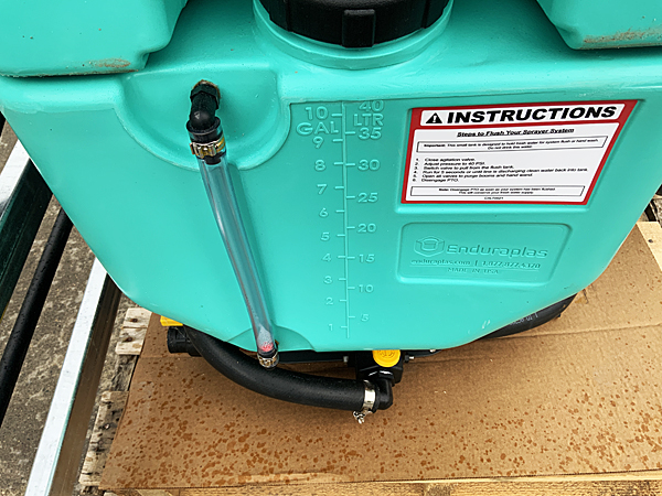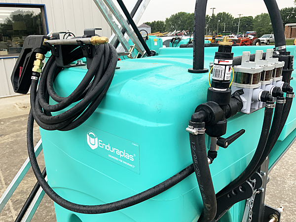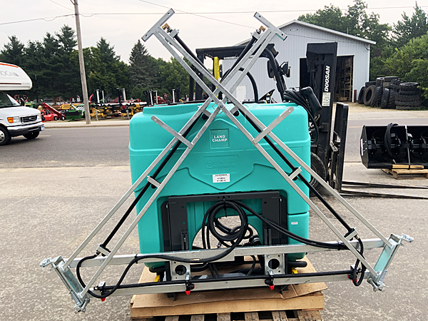 Description: New Enduraplas SLC100FG8GR 100-gallon Land Champ 3 pt. mounted sprayer, 3 electric solenoid valves with console/guage, tank sight gauge, 10-gallon flush tank/safety tank with sight gauge, CAT I or CAT II 3 pt. hitch mast, sprayer frame has integrated pallet fork cutouts for easy removal from tractor, large 16" submarine style tank lid, Delavan 6900C six-roller PTO pump with flow rate of 8 GPM, hand gun with 15' of hose, tank size: 27" long X wide X 48" high, 20-foot manual X-fold galvanized boom with 12 nozzle bodies on 20" spacing. Includes diaphragm bodies with 110-degree #2 (yellow) spray tips. Weight of sprayer with 20-foot boom 315 lbs. Complete with 20-foot boom, dealer freight and setup. Note: Both sprayers have been sold, but we have a new unit on order Please call for details. 10/14/2025
