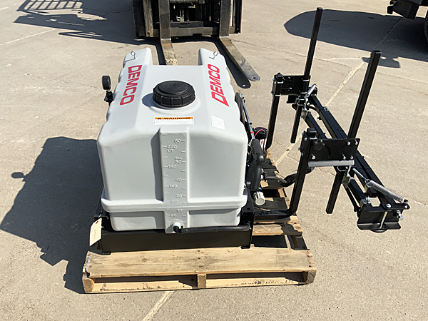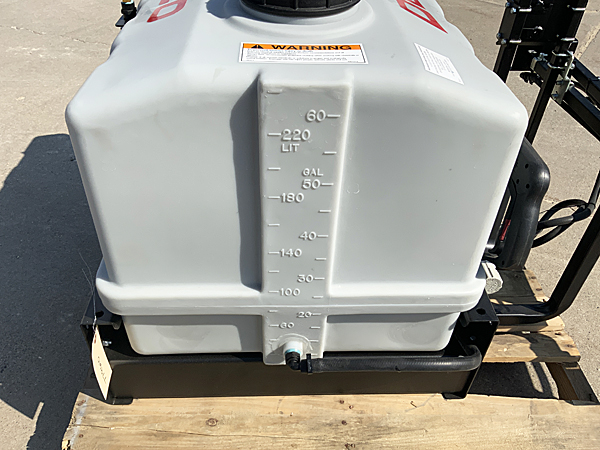 Description: New 2026 Demco 60-gallon skid sprayer (9464116), DB12 12-foot rear-fold boom with optional conversion kit (Part #9428173) with seven nozzles on 20" spacing, electric controls with single solenoid valve, heavy duty 12-volt pump, pressure gauge, deluxe wand handgun with 15' of hose. Fits in the back of a UTV. Skid is 34" wide X 26½" deep. We have five two units in stock. 04/18/2026