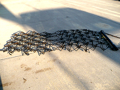Description: Walco V-H6-40 6' X 8' flexible drag harrow with 7/16" diameter teeth. Includes pipe draw bar with pull chain. (Not pictured.) We have three one unit in stock. 05/28/2025
