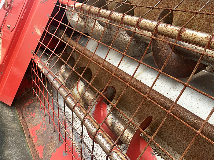 Description: Used Buhler Farm King Y1370 13" X 70' gear-drive low-profile swing hopper auger, 540 CV PTO, scissor lift transport, electric hopper mover, good original flighting. Been serviced through our shop. Field ready.