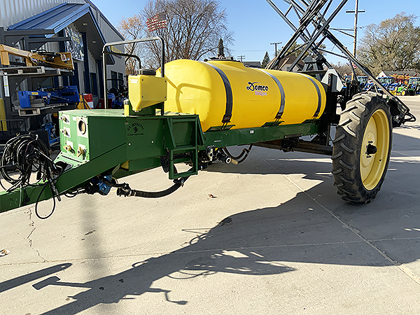 Description: Used Demco Star Quest Big Wheel 600 gallon pull-type sprayer, Goodyear 11.2X38 R1 ag bar tires, 50-foot hydraulic X-fold boom, 31 quick jet nozzle bodies on 20" spacings, 3-valve electric controls, rinse tank, Hypro hydraulic drive sprayer pump, bottom fill kit, adjustable wheel spacings from 60" to 120", clevis or single tang hitch bar, transport lights. Good, clean sprayer. Recent trade-in; has been winterized.