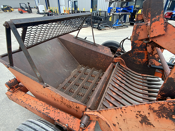 Description: Used Rite Way RR200 rock picker, 2-bat hydraulic orbit motor chain drive reel, electric-over-hydraulic dump, fixed-position tongue with clevis hitch. Good, clean, older rock picker.