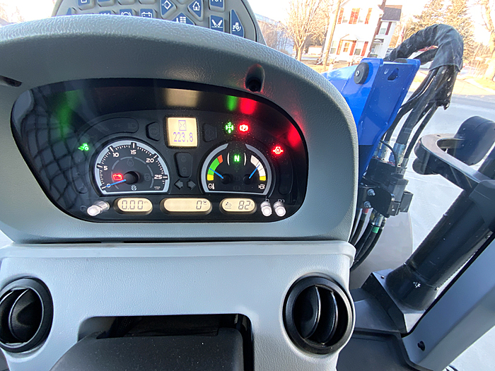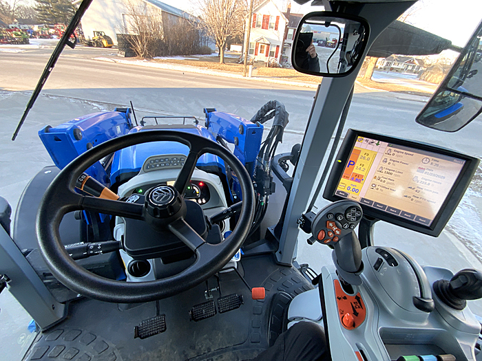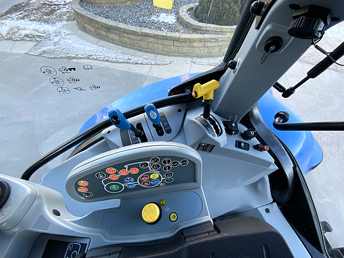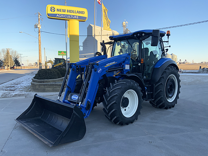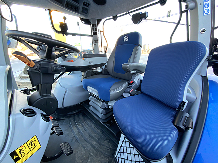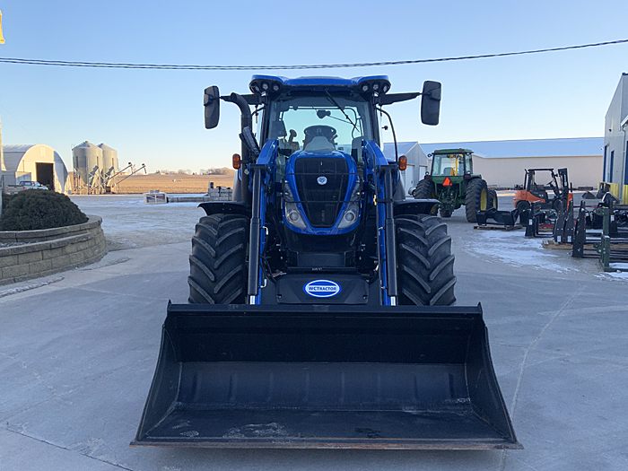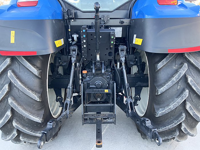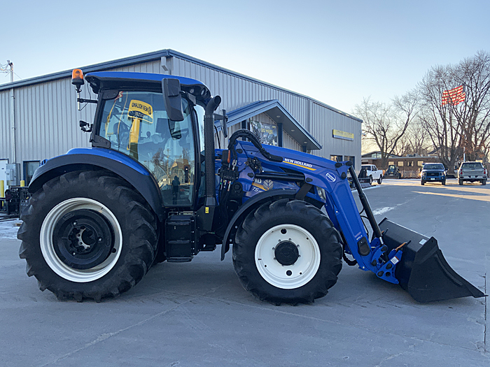 Description: 2020 New Holland T5.140 4wd tractor, 40KPH CVT transmission, 600/60R38 single rear tires with wide rear fenders, 480/60R28 front tires with front fenders, suspended cab, deluxe interior, extendable & heated external rear view mirrors, dual beacon lights, 16 LED lights, 540, 540E & 1,000 PTO, rear wheel weights, four rear remote valves, 3-point & top link with external lift cylinders, pin-adjustable lower 3-point arm stabilizers, class 1.75 front axle suspension, New Holland 815LA loader with euro quick-tach bucket & joystick control, 223.8 actual one-owner hours. Like new original condition. Has Premier warranty till 10/26/2026.