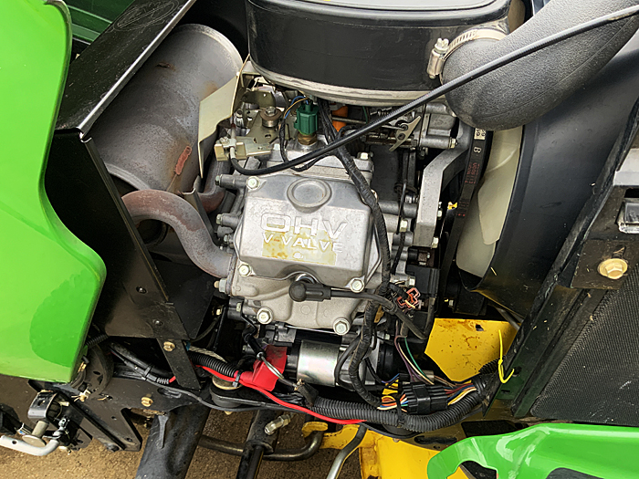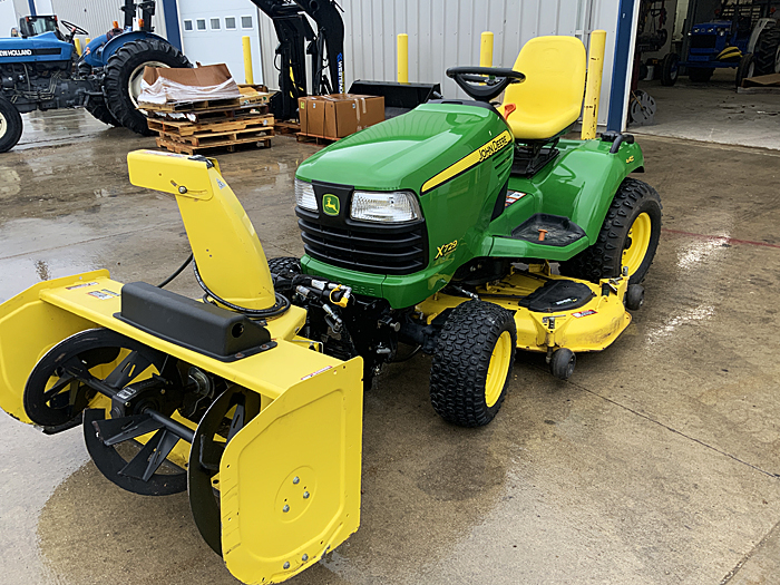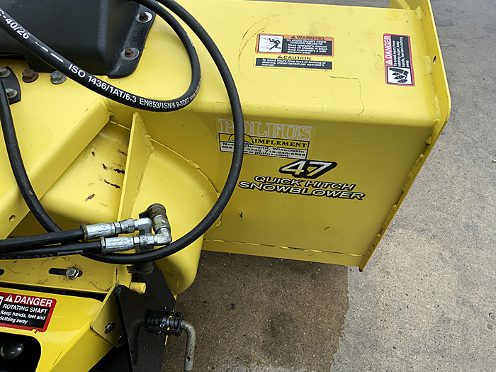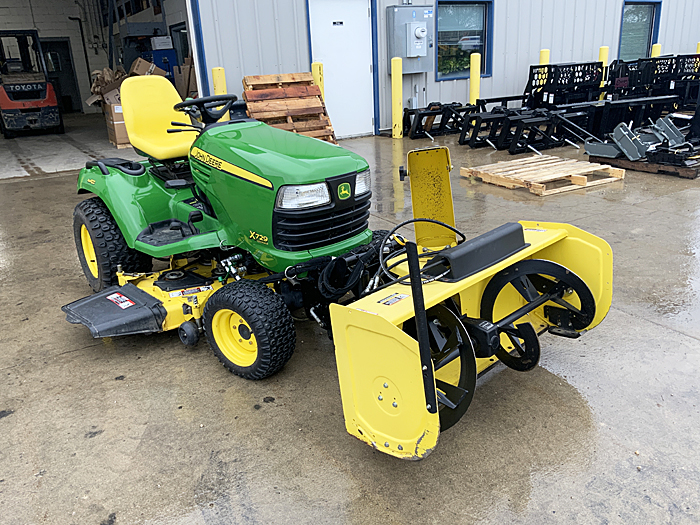 steering, tilt steering column, hydraulic lift for attachments, 12-volt outlet, turf tires, 54" mower deck, Model 47 quick-hitch two-stage snowblower, 906 one-owner hours. Serviced through shop. Very clean, sharp, well-cared-for unit. We have all the operator manuals.