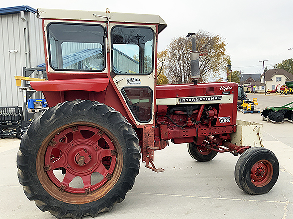 Description: 1969 Farmall 656 gas tractor, hydrostatic drive transmission, has the original 15.5X38 Goodyear Power Torque tires @ 20% tread, two-point hitch, Year Around cab with heater, rock box on the front, lights all work, two remote hydraulic valves, 540 rear PTO. One-owner tractor. All original paint. Has 2,883 actual hours. Very sharp, straight, clean tractor for its age. Checked over through our shop.