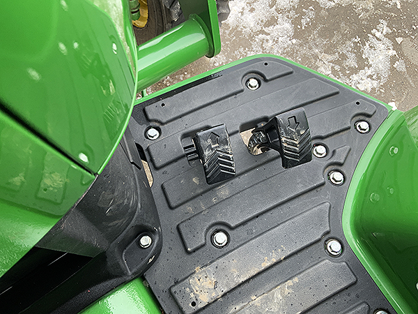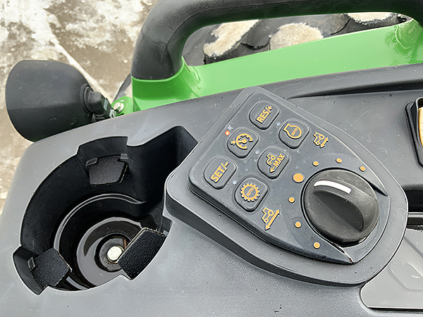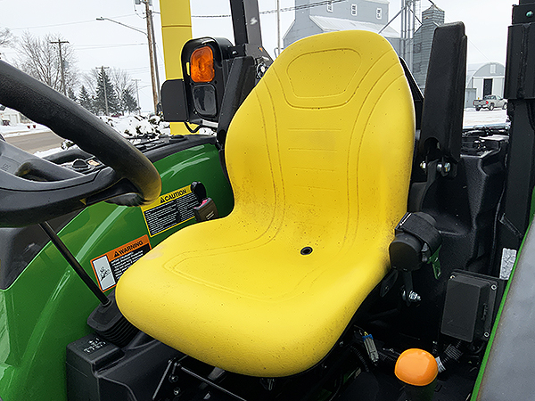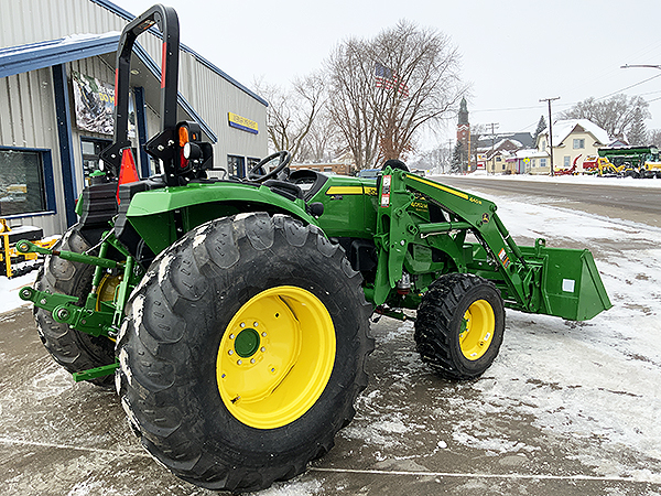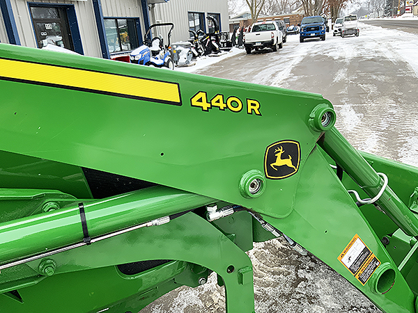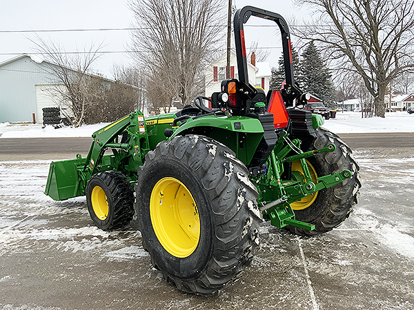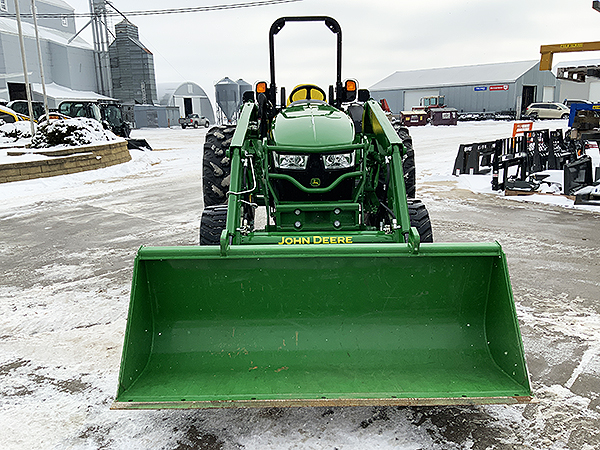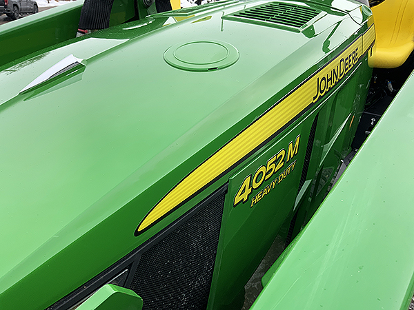 Description: Used John Deere 4052M heavy duty compact 4wd tractor, 52 engine hp, Cat I/II 3 pt. hitch with center link, 19.5LX24 Galaxy 10-ply R4 industrial rear tires, 31.5X13.00-16.5 10-ply R4 front tires, 3-range hydrostatic drive transmission, front weight bracket, brush grille guard, one rear remote hydraulic outlet, John Deere 440R 72" heavy duty quick-tach bucket with SSL mount plate, joystick loader valve loader S.N.: 1PO440RXCPC072070. One owner, new condition, 92.1 actual hours.