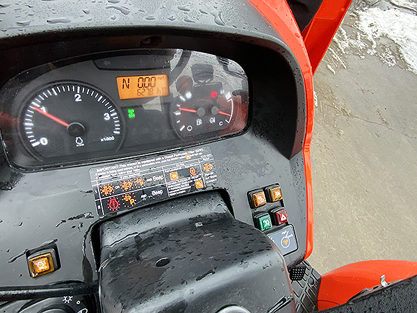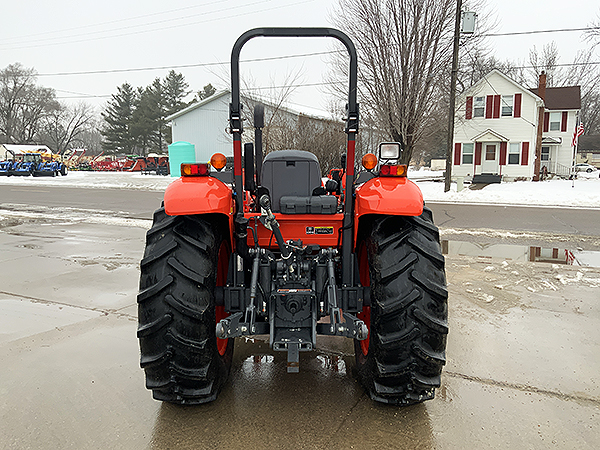 Description: 2016 Kubota M7060HD 4wd tractor, 71 engine horsepower, ROPS, 8X8 gear-drive transmission with hydraulic shuttle (4 speed with 2 ranges), 16.9X30 Goodyear Dura-Torque DT 221 rear tires, 9.5X24 Goodyear front tires, 2 rear wheel weights per side, Cat II 3 pt. with top link, lower 3 pt. arm stabilizers, extendable 3 pt. lower links, 540 rear PTO with flip-up shield, 1 set rear remote couplers, rear work light, engine coolant heater, spring suspension seat, tilt steering column, Kubota LA1154 quick-tach loader, SSL mount plate, front grille/brush guard, front auxiliary hydraulics, joystick loader valve, 84" bucket, bucket level indicator, loader S.N.: B2189. One owner with 627.9 actual hours. Very clean, sharp unit.