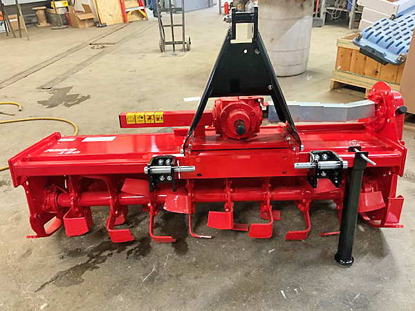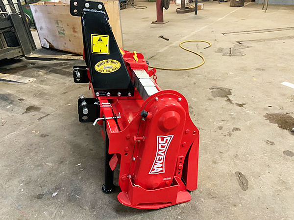 Description: New Sovema RBS-2/150 side-shift tiller with Cat I/II 3 pt. hitch, 540 PTO, single-speed gearbox, 32 blades and 60" working width. The RBS-2/150's unique 3-point hitch system and ability to offset up to 3" on the right hand side makes it particularly suitable to be used in difficult, low clearance conditions, such as orchards, vineyards and greenhouses. It has been designed to enhance the efficiency and toughness of the machine without compromising on the versatility and simplicity of its use. Lists @ $3,730, plus freight and setup. Weighs 556 lbs. 04/02/2025