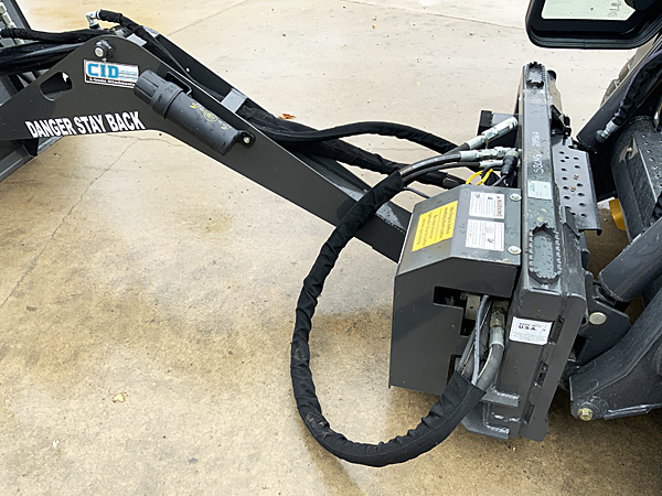Description: New CID SBCNS piston motor swing boom SSL cutter, 17-30 GPM is required, 44" cut, 4" cutting capacity, requires case drain, 96" reach when extended horizontally, vertical reach of 16', cutter can also swing to right side and be used as a side cutter. 3" x 16" tilt cylinders, ⅝" AR400 blades, includes 14 pin wire harness controller. Optional 8 pin harness (same price). Optional 7 pin harness for Bobcat (add $570). Weighs 1189 lbs. Lists at $12,460. Includes factory freight to dealer. Click here to view video of cutter. Note: This swing boom cutter has been sold, but please call for current price and availability of a new unit. 10/09/2024