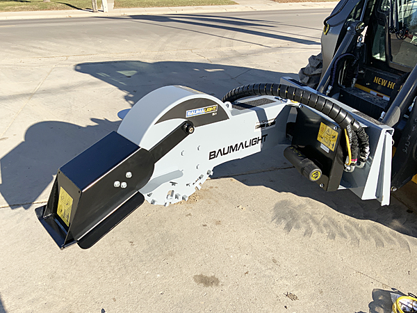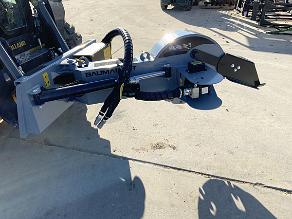 Description: New Baumalight S24-S445 SSL hydraulic drive stump grinder, 15-25 GPM, has swing cylinder, with 12-volt diverter to allow control of the hydraulic swing cylinder, cutting depth is up to 15" below grade, 34 teeth on rotor, weighs 995 lbs. Case drain not required. Includes D004460 wired hand-held controller, as shown in photos. Lists at $9,260, plus freight and setup. Note: Both stump grinders have been sold, but additional units are available. Please call for details. 03/12/2024.