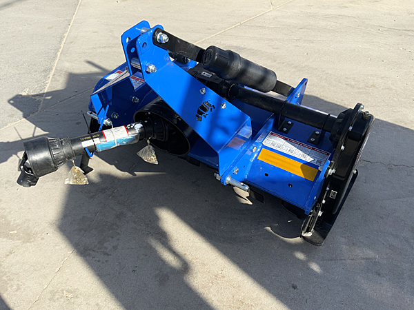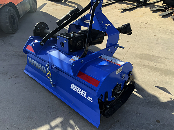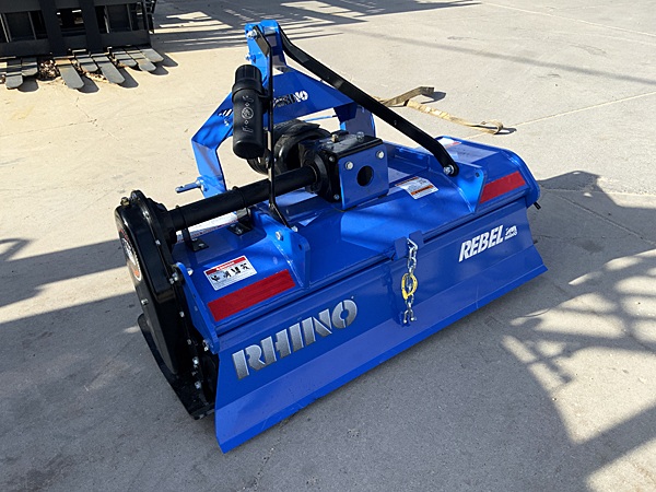 Description: New Rhino REB48 48" 3 pt. rotary tiller, standard rotation, Cat I quick hitch compatible, 540 PTO with slip clutch. Weighs 623 lbs.