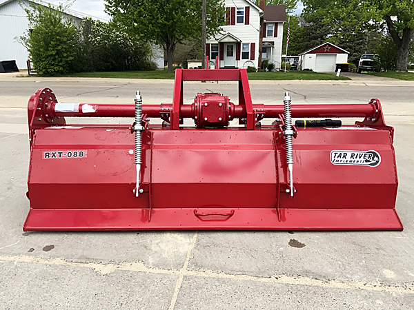 Description: New 2024 Belco Tar River RXT-088 heavy duty 3pt. rotary tiller, 85" tilling width, Series 6 540 PTO with slip clutch, PTO rating from 60 to 120 hp, weighs 1,121 lbs. Note: This tiller has been sold, but more are available. Please call for current price and availability of a new unit.