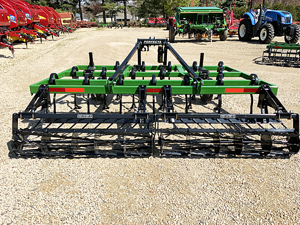 Description: New Unverferth Perfecta 12 rigid (STP101201GA) 10-foot 3 pt. cultivator with heavy duty S-tines, 4" wide two-bolt shovels, diagonal single-bar heavy duty drag, two-section rolling baskets, pair of gauge wheels/tires, Cat II/III 3 point hitch, green color. Note: This cultivator has been sold, but we have a new unit on order. Please call for details. 02/03/2026