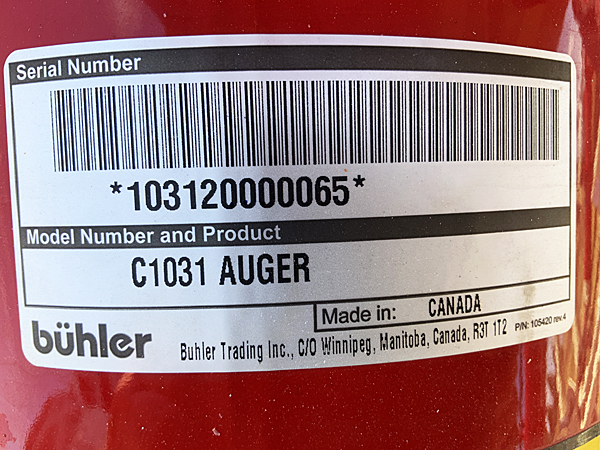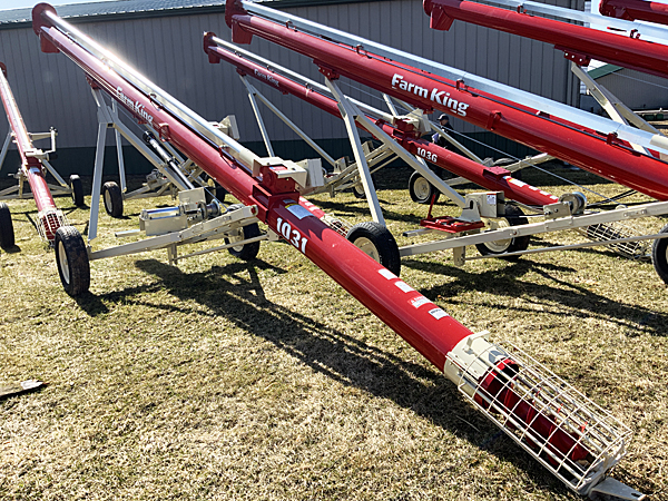 Description: New Buhler Farm King C1031P triple belt PTO-drive auger, enclosed upper drive with #80 chain, heavy duty gear box, new tires. Lists @ $10,350, with freight & setup. 11/21/2022.