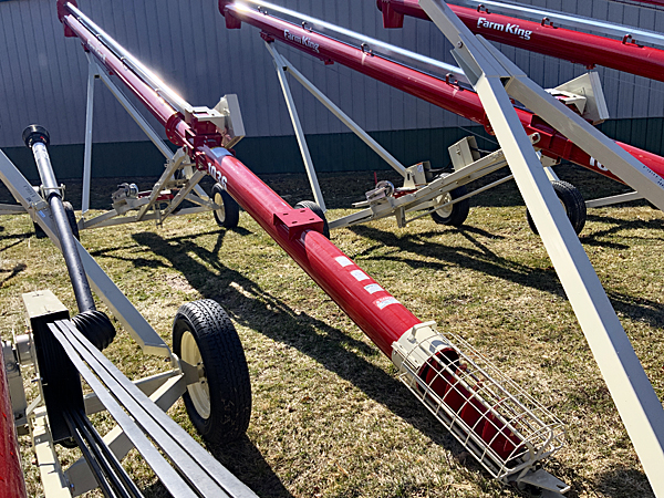 Description: New Buhler Farm King C1036E 10" X 36' triple belt gas engine/electric motor drive auger, enclosed upper drive with #80 chain, heavy duty gear box, new tires. Lists @ $10,970, with freight & setup. We have four two units in stock. 08/22/2025