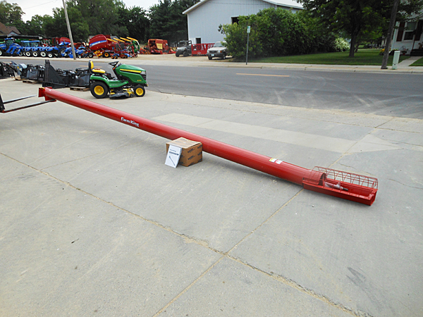 New Buhler Farm King C1036D 10" X 36' direct drive PTO-driven auger, heavy duty gear box (auger can be set up to drive from either side), enclosed top oil bath drive with #80 chain, new tires. Lists @ $10,520, with setup & freight.