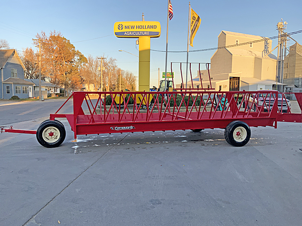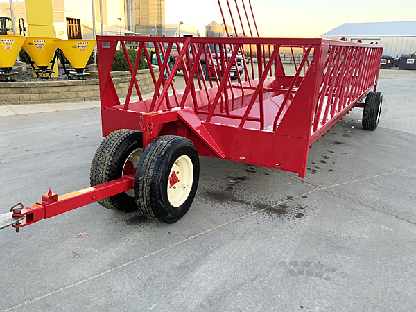 Description: New JBM (Walco) 141406 8-foot wide by 20-foot long Cattleman's Choice feeder wagon with front dolly wheels, 40 feeding acres, 16" 10-ply used truck tires with new tubes, tow hitch, extension tongue, inside double bars hinge open for easy clean-out, has hinged rear gate. Lists @ $7,680 includes factory freight. Note: This feeder wagon has been sold, but please call for current price and availability of a new unit. 11/18/2024