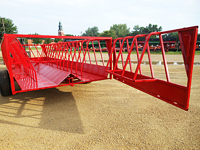 Description: New JBM (Walco) 141407 8-foot wide by 24-foot long Cattleman's Choice feeder wagon with front dolly wheels, 46 feeding spaces, 16" 10-ply used truck tires with new tubes, tow hitch on rear extension tongue, inside double bar hinge open for clean-out, has hinged rear gate. Lists @ $8,215. We have one unit in stock and two new units on order. Please call for details. 03/28/2026