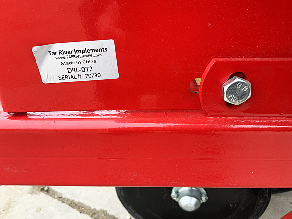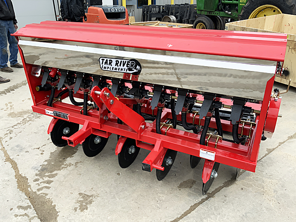 Description: New Tar River DRL-072 6-foot conventional 3 pt. drill/crop seeder, 10 double disc openers, CAT I/II 3 pt., two stainless steel boxes with closeable slides for each row, can apply fertilizer to each row while planting, working depth ¾" to 2", combination rolling basket, drag and rear roller, 6" spacing, minimum of 20 HP required. Weighs 625 lbs. Includes dealer setup/pre-delivery and factory freight to dealer. Lists @ $5,160 including freight and setup. Note: All six seeders have been sold, but we have a new unit on order. Please call for details. 03/18/2026