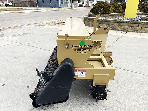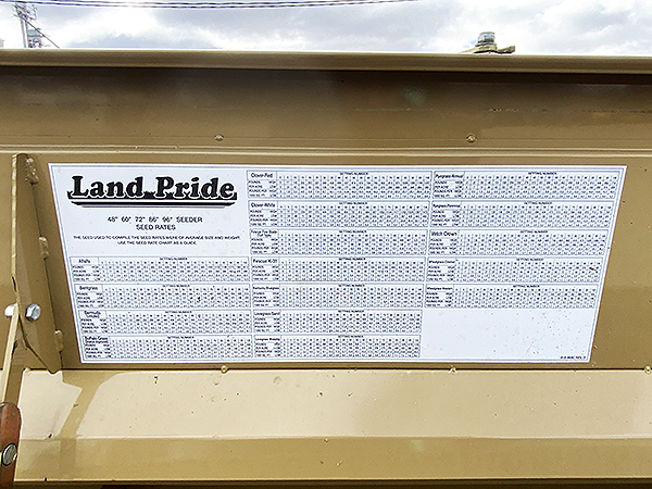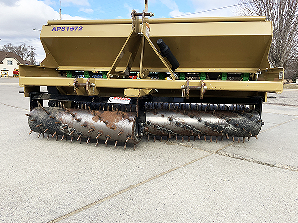 Description: Used Land Pride APS1572 6-foot all-purpose seeder, 6-bushel capacity, 10 fluted seed cups, two 8" diameter spiked rollers, can angle rollers from 0 to 20 degrees, rear spring-loaded roller, operator manual, weighs approximately 836 lbs. Like new, low-usage unit, serviced through our shop.