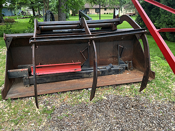 Description: Used Miller model S Q-tach loader, 96" heavy duty pin-on bucket, three-tine grapple fork, complete with all cylinders/hoses/couplers. Mount kit for Case 1270 tractor. Can be made to mount on other brand tractors. Very clean; no welds; cylinders are dry. It's all there/complete. Manufactured in Larchwood, Iowa.