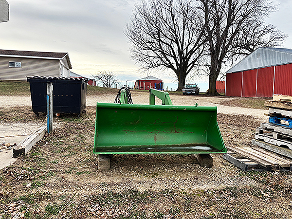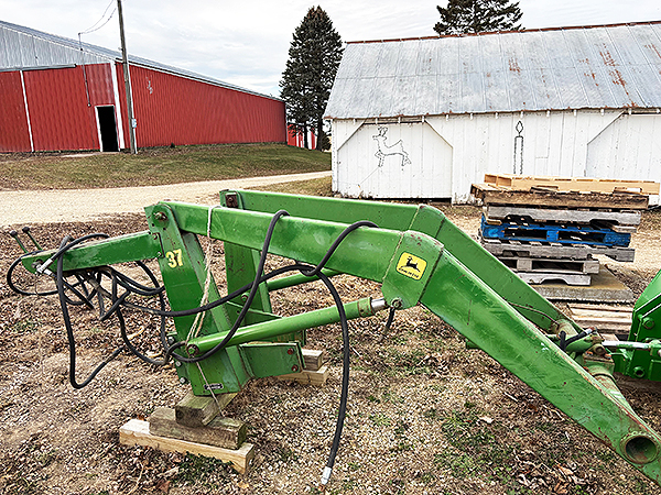 Description: Used John Deere model 37 farm loader, two-spool loader valve, snow/light material bucket. Was originally sold new with an 820 John Deere tractor. Complete loader and mounting brackets removed from this tractor. Will also fit other model John Deere tractors.