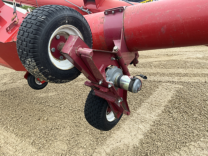 Description: Used Buhler Farm King Y1370 13" X 70' gear-drive low-profile swing hopper auger, 540 CV PTO, scissor lift transport, electric hopper mover, good original flighting. Been serviced through our shop. Field ready.