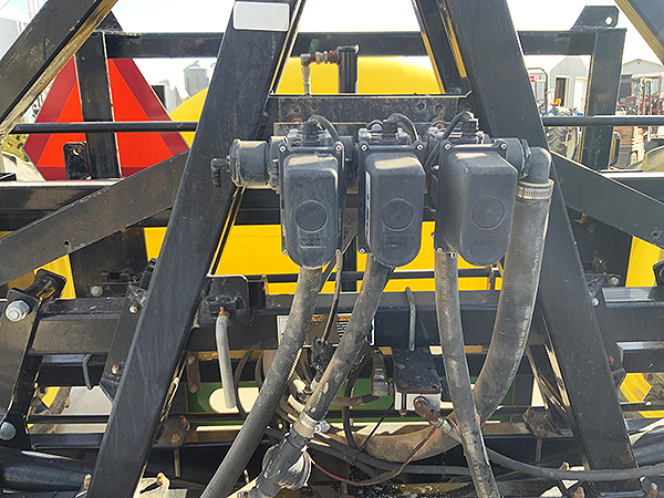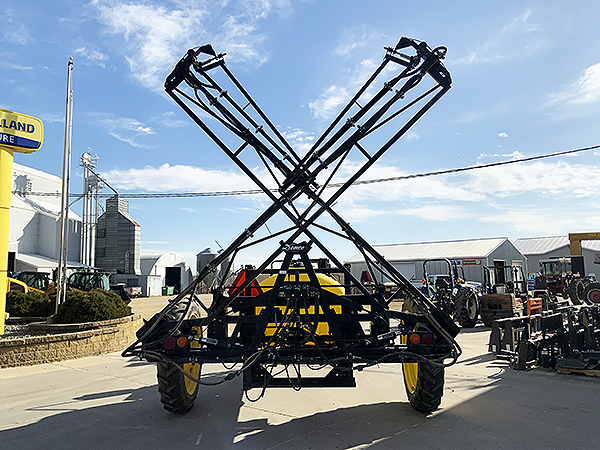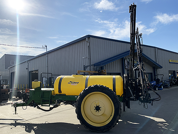 Description: Used Demco Star Quest Big Wheel 600 gallon pull-type sprayer, Goodyear 11.2X38 R1 ag bar tires, 50-foot hydraulic X-fold boom, 31 quick jet nozzle bodies on 20" spacings, 3-valve electric controls, rinse tank, Hypro hydraulic drive sprayer pump, bottom fill kit, adjustable wheel spacings from 60" to 120", clevis or single tang hitch bar, transport lights. Good, clean sprayer. Recent trade-in; has been winterized.