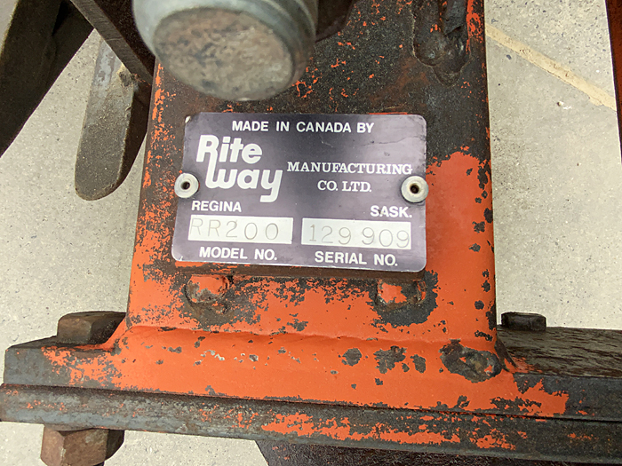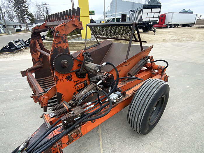 Description: Used Rite Way RR200 rock picker, 2-bat hydraulic orbit motor chain drive reel, electric-over-hydraulic dump, fixed-position tongue with clevis hitch. Good, clean, older rock picker.