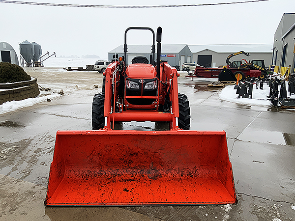 Description: 2016 Kubota M7060HD 4wd tractor, 71 engine horsepower, ROPS, 8X8 gear-drive transmission with hydraulic shuttle (4 speed with 2 ranges), 16.9X30 Goodyear Dura-Torque DT 221 rear tires, 9.5X24 Goodyear front tires, 2 rear wheel weights per side, Cat II 3 pt. with top link, lower 3 pt. arm stabilizers, extendable 3 pt. lower links, 540 rear PTO with flip-up shield, 1 set rear remote couplers, rear work light, engine coolant heater, spring suspension seat, tilt steering column, Kubota LA1154 quick-tach loader, SSL mount plate, front grille/brush guard, front auxiliary hydraulics, joystick loader valve, 84" bucket, bucket level indicator, loader S.N.: B2189. One owner with 627.9 actual hours. Very clean, sharp unit.