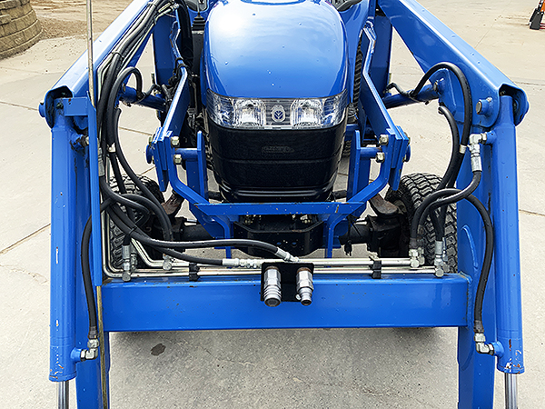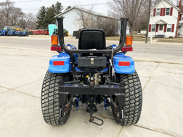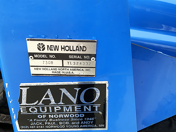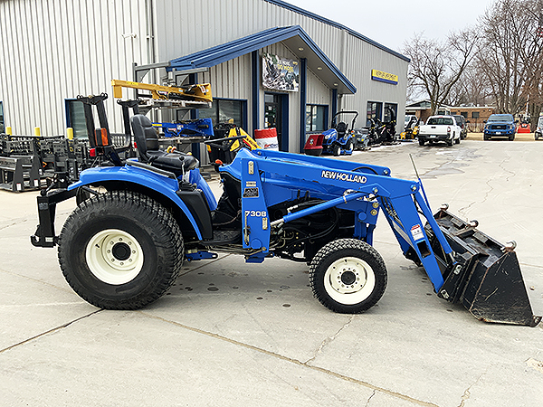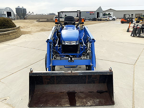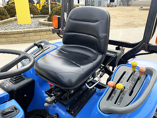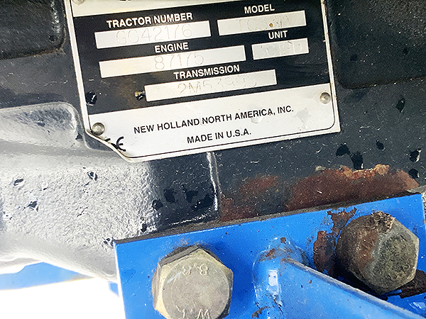 Description: 2003 New Holland TC33D compact tractor, 4wd with Super Steer front axle, R3 front and rear turf tires, tilt/telescopic steering column, folding ROPS, cruise control, one set rear remote hydraulics, set of front remote hydraulics with flat face couplers for use with grapple, 3 pt. Cat I quick hitch, New Holland 7308 loader with SSL quick attach 60" bucket, joystick loader valve, loader S.N.: YL324332. Tractor has 621 actual hours.