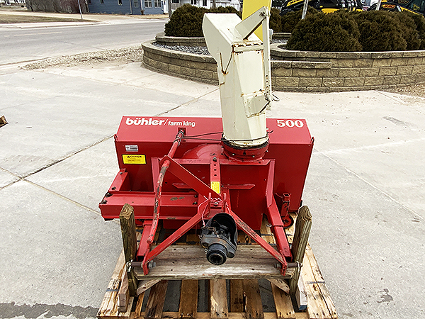 Description: Buhler Farm King 500 60" 3 pt. 2-stage snowblower, 540 PTO, manual hand crank chute control.