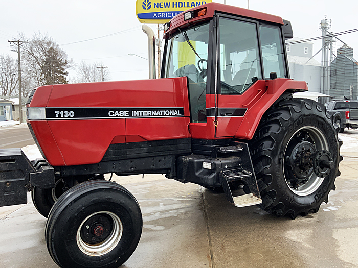 1988 Case IH 7130 Magnum 2wd tractor, cab with heat/air/radio, 18-speed powershift transmission, 1⅜" 1,000 PTO, 3 pt. hitch with top link, 2 rear remote valves, 188 engine hp, 170 PTO hp, new 520/85R38 rear tire just installed, 14LX16.1 front tires, full rack of front weights, LED lighting, axle mount duals with used matching tires. Serviced through our shop. Recent engine and transmission overhaul (have paperwork on engine and transmission overhaul), 9,252 hours. Very clean, straight, sharp tractor.